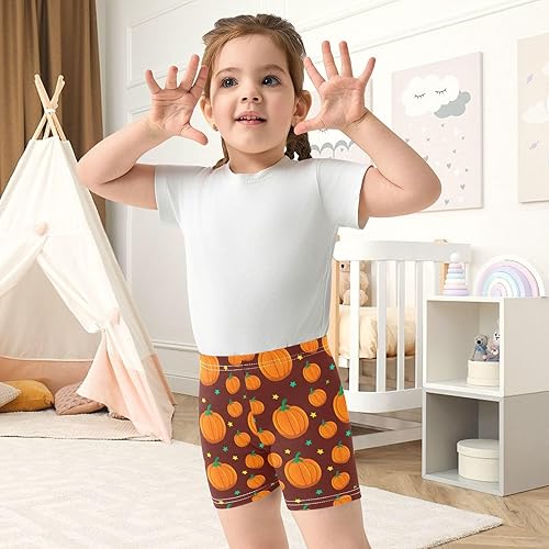Pumpkin Stars Brown Girls Bike Shorts Toddler Soft Cotton Active Under Dress Shorts(Multi-pumpkin Stars Brown,4T)