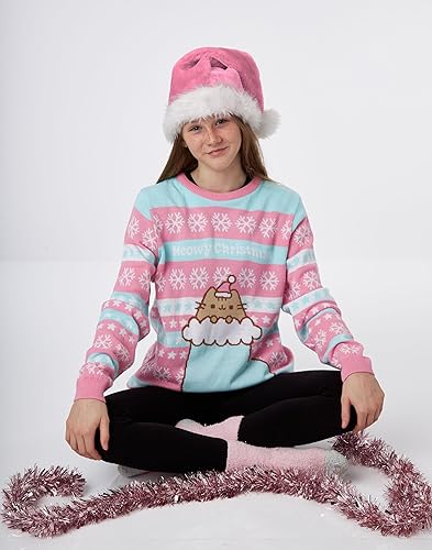 PURR-FECTLY ADORABLE HOLIDAYS: Girls, gather 'round for a purr-fectly delightful secret – the Pusheen Girl's Pink Christmas Knit Sweater! If cute and cozy are your holiday staples, you're in for a treat.