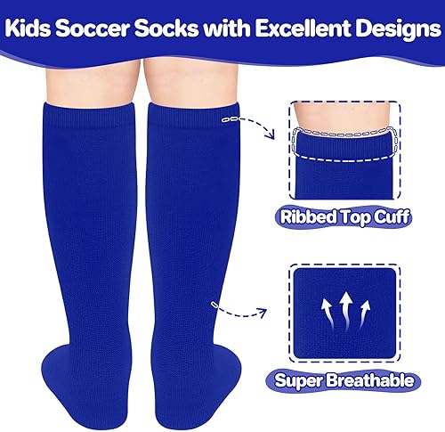 SUPERIOR BREATHABILITY & SWEAT-WICKING ABILITY: The kids soccer socks are mainly made of premium cotton, which is ultra soft, warm and skin-friendly, making kids feel comfortable throughout the day. Featuring excellent breathability and sweat absorption, our toddler soccer socks can effectively dissipate heat and absorb sweat to keep children's feet dry even during vigorous exercise. And the kids baseball socks are super durable and not easy to pill or fade, so they can be used for a long time!