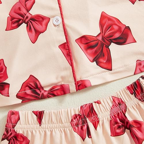Design: Two piece baby girl button-on pajamas nightgowns, soft bowknot printed pajamas, furry feather trim pajamas for girls, toddler girl cotton pajamas button-up pjs sleepwear loungwear