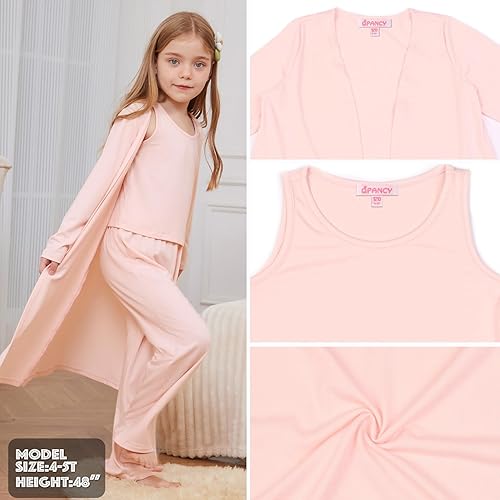Style: Fashionable girls' pajama set, the perfect combination of tank top and open front coat, let your little princess have more fashion and warmth when the weather turns cooler.