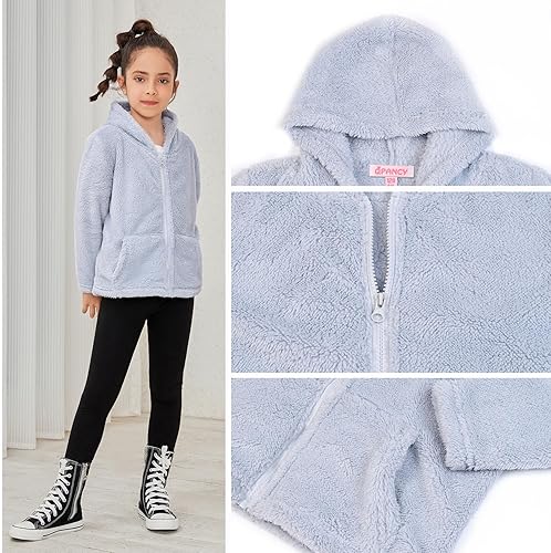 Material: Girls fuzzy sherpa coat, 100% polyester, super soft, warm and skin-friendly, the sherpa hoodies will definitely keep your girls warm all day!