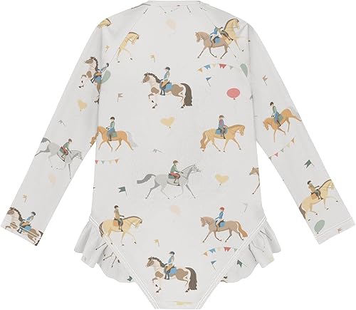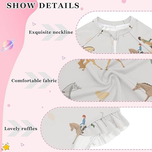 QUGRL Long Sleeve One Piece Ruffle Swimsuit for Girls Size 5-6 Riders Ride Horses and Ponies Girl Rashguard Shirt Bathing Suit with UPF 50+ Sun Protection