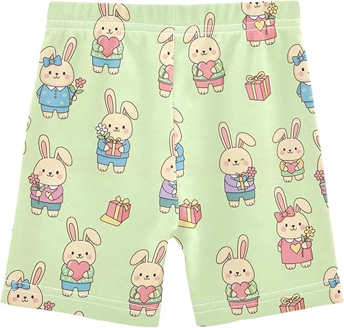 Rabbit Green Girls Bike Shorts Toddler Soft Cotton Active Biker Shorts(Multi-rabbit Green,10 Years)