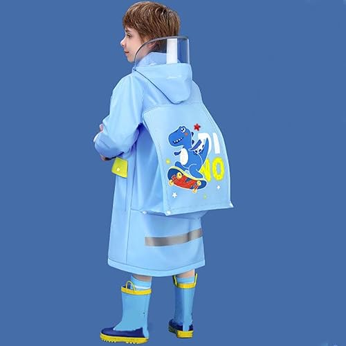 Rainwear Design - Lightweight material up easily to fit in a school bag, hide a schoolbag position behind the raincoat, the position is large enough; Suspenders and feet are adjustable for growing kids. Seals out rain, wind, snow, and slush while providing; Adopt a button high-collar water-proof placket to pre.vent rain from falling into the collar; a transparent large brim without blocking the line of sight while effective rain prot.ection.Simply rinse off and wipe wash!