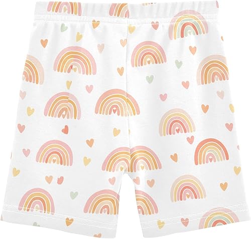 Rainbow Hearts White Girls Bike Shorts Toddler Soft Cotton Active Under Dress Shorts(Multi-rainbow Hearts White,10 Years)
