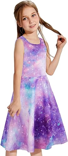 FEATURES:The sundress is made of 3D printing technology, casual style, round neck, sleeveless, knee length, twirl hem, make your daughter more sweet and cute