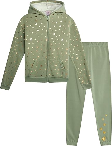 Cozy Girls Sweatsuit Set: A fleece-lined girls sweatsuit that includes a sherpa hood zip hoodie and jogger sweatpants, making it one of the most versatile girls' clothing sets for everyday wear. This 2 piece outfit works as a sweat set, jogger set, or sweat suits option, layering easily into girls fall outfits and girls winter clothes. Ideal for school, activities, or relaxing at home in sizes 7-12.