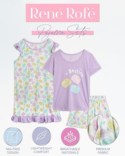 Officially Licensed Rene Rofe: Girls' Ruffle Sleep Gown, Pajama Shirt, and Sleepwear Shorts Pajama Set; Synonymous with style and comfort