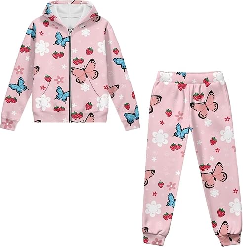 【Feature】Hoodie is long sleeve, hooded, 2 front pocket, zipper closure, regular fit, casual loose, sporty. Sweatpants is full length, elastic waist for easy pull on and take off, comes with 2 side pockets for keys, cards, small objects and hands. Outfits set is unisex, for kids teens girls