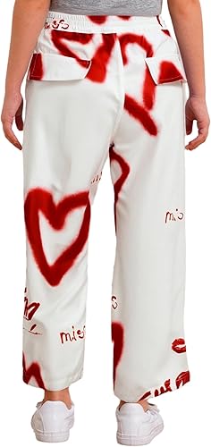 The red heart print add style to the pure white pants, can match with tank top, vest, shirt for a fashion look