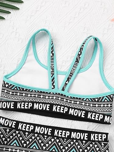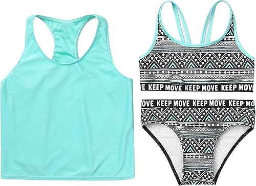 3Pcs Kids Girls Straps Cropped Tops with Round Neck Sleeveless Racer Back Vest and Briefs Set Swimwear