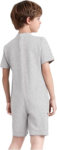 renvena Special Needs Adaptive Clothing for Kids Girls Boys Anti-Strip Jumpsuit with Tube Access Short Sleeve Romper Grey 16 Years