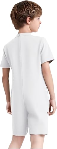renvena Special Needs Adaptive Clothing for Kids Girls Boys Anti-Strip Jumpsuit with Tube Access Short Sleeve Romper White 16 Years