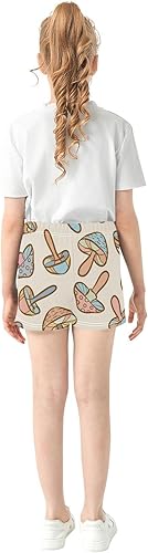 【Functional Design】Our shorts for girls come with practical pockets on both sides,providing ample space for storing small essentials.The mid-waist design with a wide elastic band ensures a secure fit without squeezing the belly,making these girl shorts an ideal choice for active play