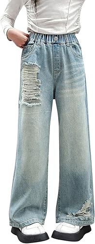 Comment on "Ripped Denim Jeans for Girls Straight Wide Length Denim Pants Kids Elastic Waist Baggy Distressed Trousers(Blue,11-12 Years)"