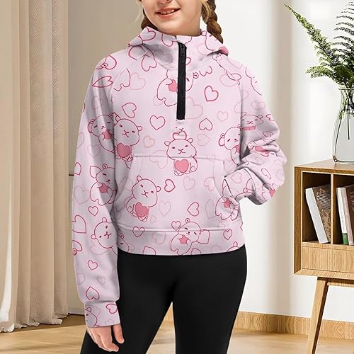 【Half Zip Hoodies】Made of high-quality polyester fabric, this sweatshirt is incredibly soft, breathable, and warm. It offers a comfortable, skin-friendly fit, perfect for fashion-forward girls
