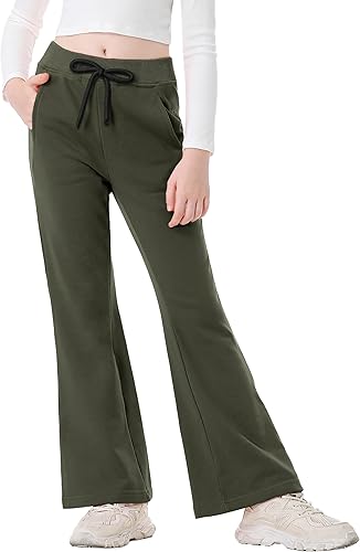 【Flared Hem】: Girls flare wide leg sweatpants with flat comfortable elastic waist which adds a customized fit, retro flare bottom fits trend, it's not a legging style, pockets on both sides are great for holding small items or other essentials.