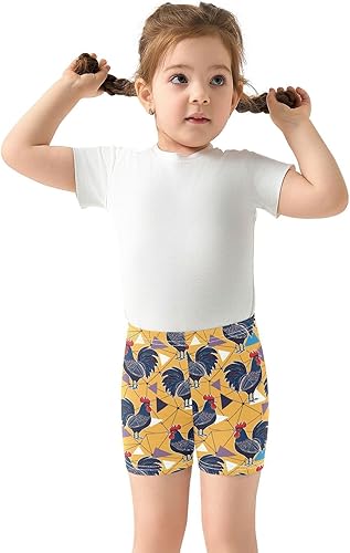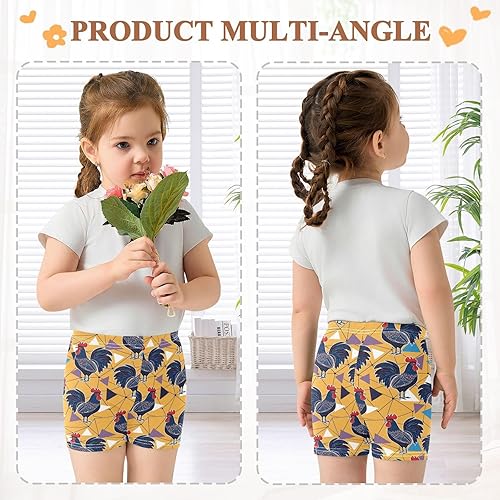 Rooster Triangle Yellow Girls Bike Shorts Toddler Soft Cotton Active Under Dress Shorts(Multi-rooster Triangle Yellow,4T)