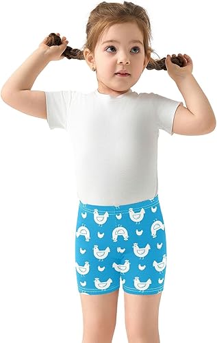 Rooster White Girls Bike Shorts Toddler Soft Cotton Active Biker Shorts(Multi-rooster White,10 Years)