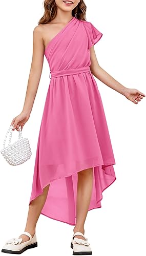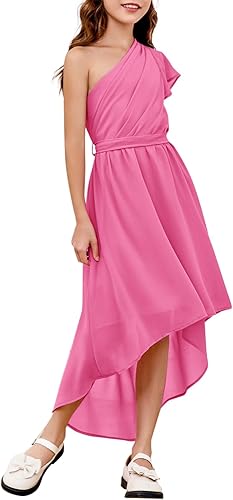 Unique design: One shoulder ruffle dresses, solid color, hidden zipper closure, girls high low dress, asymmetrical hem, high waisted design, flower girls cute dress,a-line junior bridesmaid dress for girls