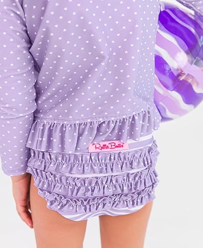 RuffleButts Lavender Heart Polka Dot Long Sleeve Rash Guard Bikini - 10