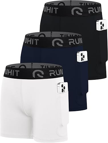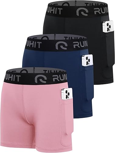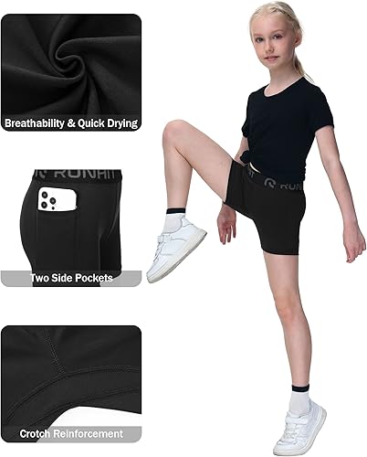 【SIDE 2 POCKETS】 Runhit girl's athletic spandex shorts with big pockets give you more convenience for easy storage keys,cards,phones and other small essentials