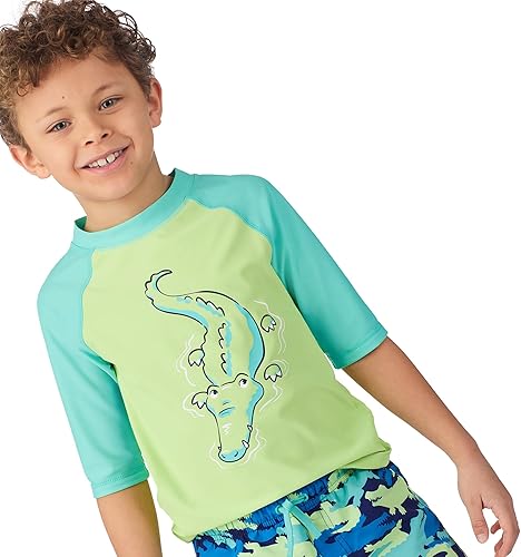 RASH GUARD SET: Our short sleeve rash guard sets feature playful characters and fun prints that will make a toddler or kid look and feel good in the water.