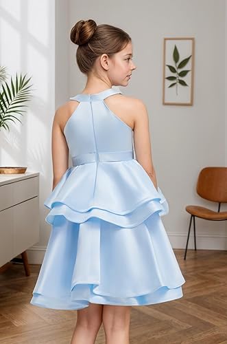 Features: Satin flower girl dress,easter dresses for girls,birthday dress for girls,girls formal dress,girls party dress,sleeveless,halter neck,high waist,A Line,off shoulder,layeried, ruffles hem,concealed back zipper closure.This short girl dresses will make your little or big girl the centre of attention