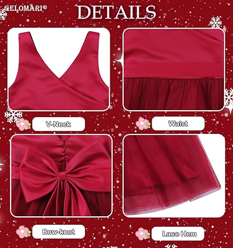 [SIZE - COLOR] 6 SIZES:5T 6Y 8Y 10Y 12Y 13Y(NOTE: As this flower girl dress has a V-neck and V-back design, please focus on the bust and waist measurements on the size chart to choose the correct size.) 4COLORS: White Red Navy-Blue Pink dress for 4-14Y girls. This flower girl dresses is a gorgeous satin girl dress we designed with our heart. We hope that every girl can wear our most beautiful dress when she is in the flower season