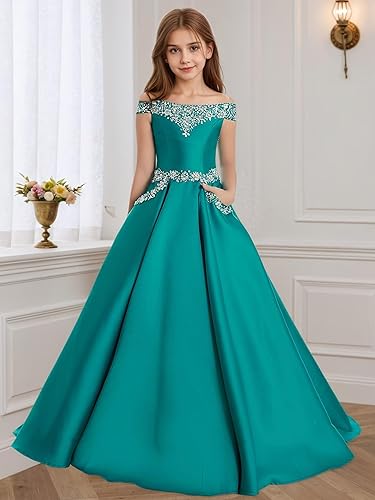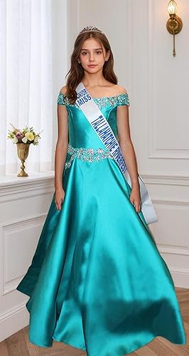 Exquisite Design: A-line Style Pageant Dresses, Off Shoulder Ball Gown Dress, Cold Shoulder , High Waist Tunic Dresses, Back Strap Closure, Floor-length. Perfect for Toddler girls/ little girls/teen girls/ junior girls.
