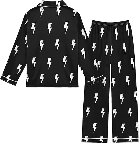 PJ SET DESIGN: Satin buttoned long-sleeved shirt with classic notch collar, comfortable elastic waistband long pants,lightweight and comfortable for loungewear and nightwear.