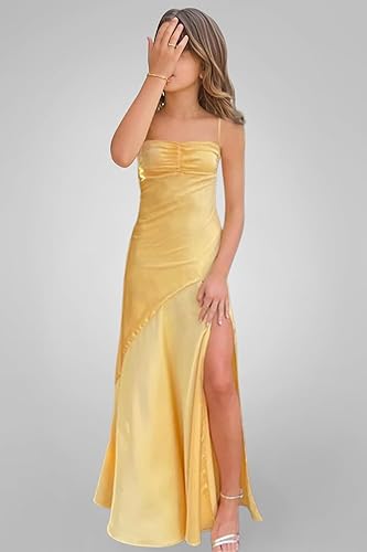 Features: This A-line Floor-Length Satin Junior Bridesmaid Dress for Wedding Teen Girls with Spaghetti Strap, long, Sweetheart Neck, Pleated, Drawstring Back, ruffle, with slit, sleeveless, Backless, ruched bodice, strapless, empire waist, high waist, lace up back, floor length and fully lined; Perfect for toddler girls/ little girls/ teen girls/ junior girls/ tween girls