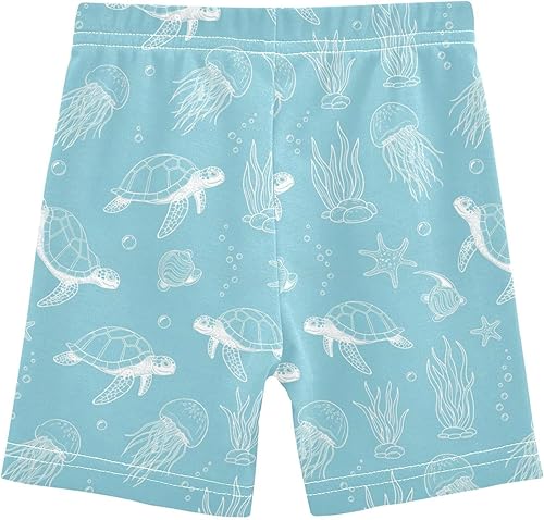 Sea Turtle Jellyfish Blue Girls Bike Shorts Toddler Soft Cotton Under Dress Cartwheel Shorts(Multi-sea Turtle Jellyfish Blue,10 Years)