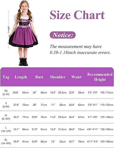 Perfect for Festive Occasions – Ideal for Oktoberfest celebrations, beer festivals, Halloween costumes, or Christmas performances, this Dirndl dress turns your little one into a Bavarian Fraulein. Great for school plays, carnivals, or fancy dress parties!