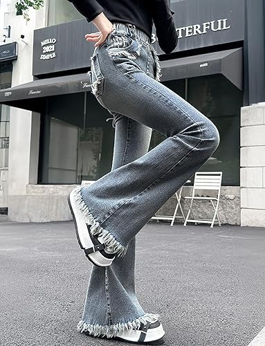 Features: Elastic waist jeans, easy to put on and take off; kids baggy jeans with pockets, easy to store some small items; girls flare jeans, can modify the shape of the girl's legs, visually prolong the legs