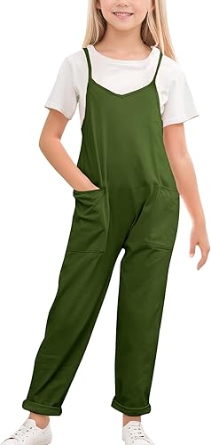 UNIQUE DESIGN: These girl's summer overalls features a V-neckline, adjustable spaghetti straps, and multiple pockets for a cute and practical look