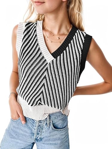 Fashion design: This vest has classic design. Sleeveless / Knit / Knitted/ Loose fit / Slim Fit / Stripe Color / Lightweight / Casual Sweater Tops / Fashion Shirts / Pullover Sweater / Thin Sweater Vest/ Casual, Cute, Chic Style / Soft and Lightweight Fabric.