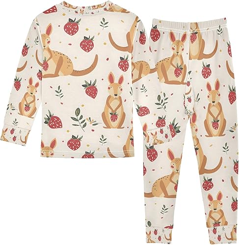 senya Kangaroo and Strawberry Pajamas Set Long Sleeve Soft Cotton Sleepwear 2 Piece(Multicolor,18 Months)