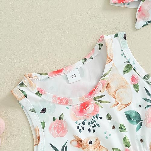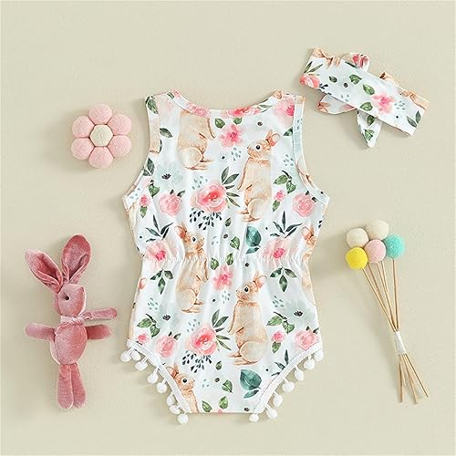 sfdgfhyf 0 to 18 Months Baby Playsuit Infant Girls Sleeveless Cartoon Print Romper with Hairband Suspender Casual(White,12-18 Months)