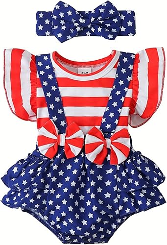 sfdgfhyf Toddler 2024 Jumpsuit Infant Newborn Independence Day Girls Flying Sleeve Star Striped Bowknot Print Romper(Red,9-12 Months)