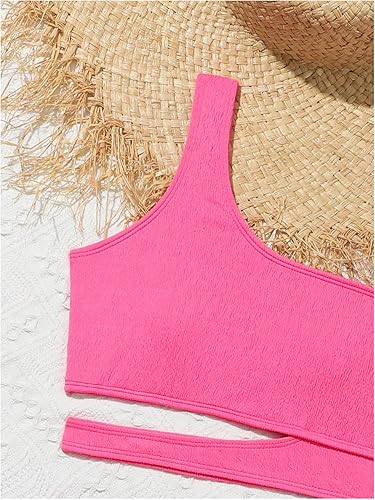 SHENHE Girl's 2 Piece One Shoulder High Waisted Cut Out Bikini Swimsuit Bathing Suit(Hot Pink,9 Years)