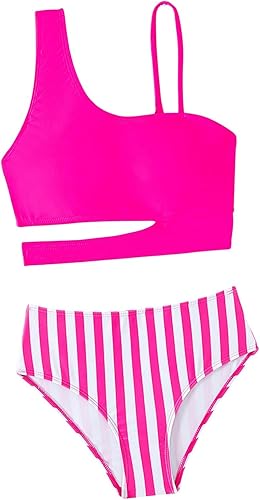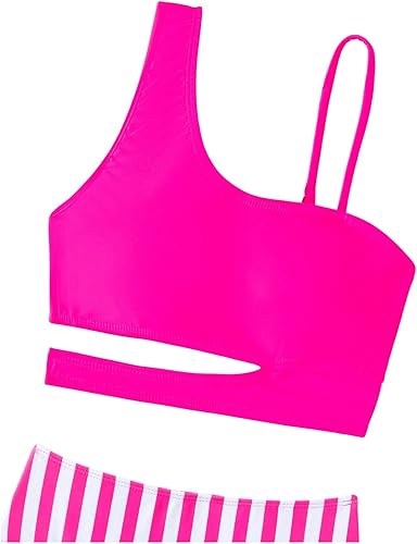 Features: two piece sets; one shoulder cutout sleeveless removable padding wireless bikini top; high waisted high cut moderate bikini bottoms