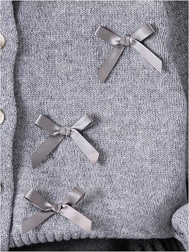 Features: Cute 2 piece outfits for fall winter, going out set preppy clothes for tween girls, button down cardigan sweater with bows, a line flared pleated knit skirt