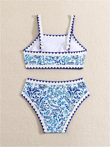 Features: 2 piece tankini sets for girls, high waisted, floral, graphic, contrast binding, boho swimsuit