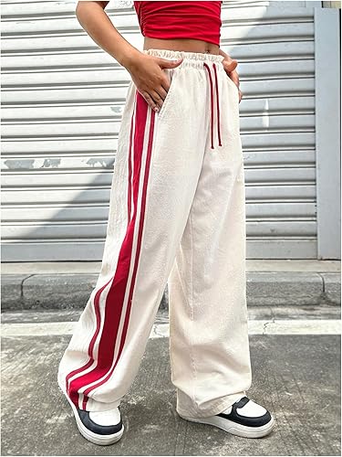 Features: Wide leg loose track pants for girls, side striped, elastic waistband with drawstring, baggy pants, cool pants trousers, with pockets, long pants