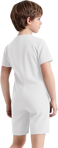 Shinsto Kids Girls Boys Special Needs Adaptive Clothing Anti-Strip Romper Short Sleeve Zip Back Jumpsuit White 8 Years