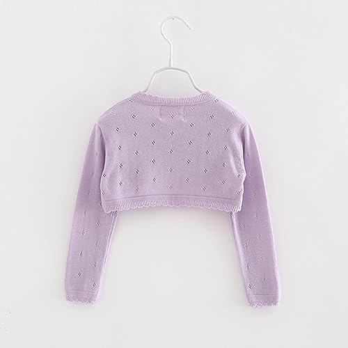 Short Cotton Cardigans for Girls Kids Long Sleeve One Buttons High Neck Sweater Shirts Solid Soft Lace Tops Clothes(Purple,6-7 Years)