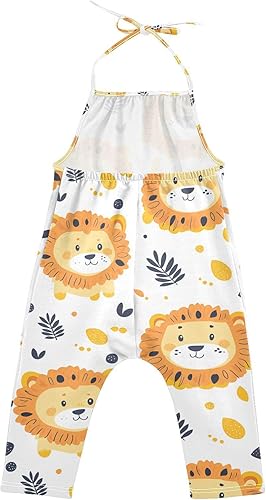 Simple Lion Toddler Girl Clothes Sleeveless Romper Jumpsuit for Girls Summer One Piece Romper Pants Size 1-6T(Multicolor,1T)
