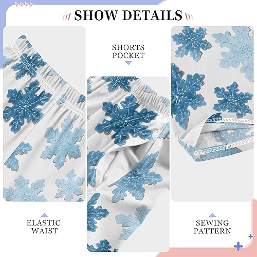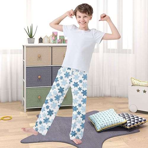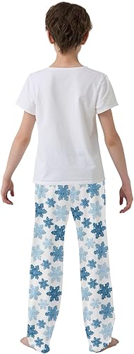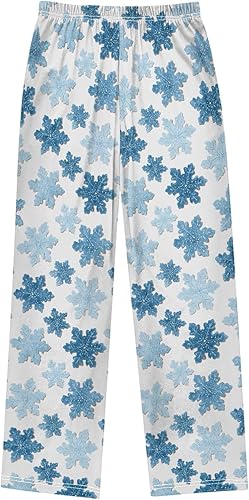 Snowflakes White Background Pattern Pajama Pants Cute Lounge Sleep Pants Pajama Bottoms Elastic Waist with Pockets(Large)